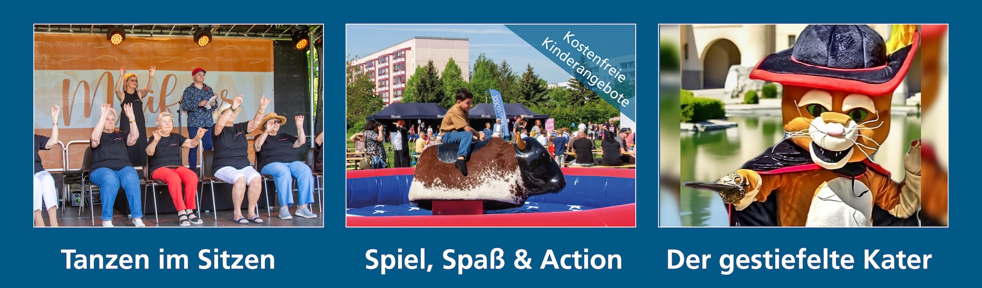 Am Nachmittag rückt die gemeinsame Bewegung und das Mitmachen in den Fokus. Beim „Tanzen im Sitzen“ zeigt der Jugend- und Altenhilfeverein, wie vielfältig und generationenübergreifend sportliche Aktivität sein kann. In zahlreichen Gruppen – betreut von qualifizierten Kursleitern – stehen vor allem Freude an der Bewegung, Gemeinschaft und das aktive Miteinander im Mittelpunkt.